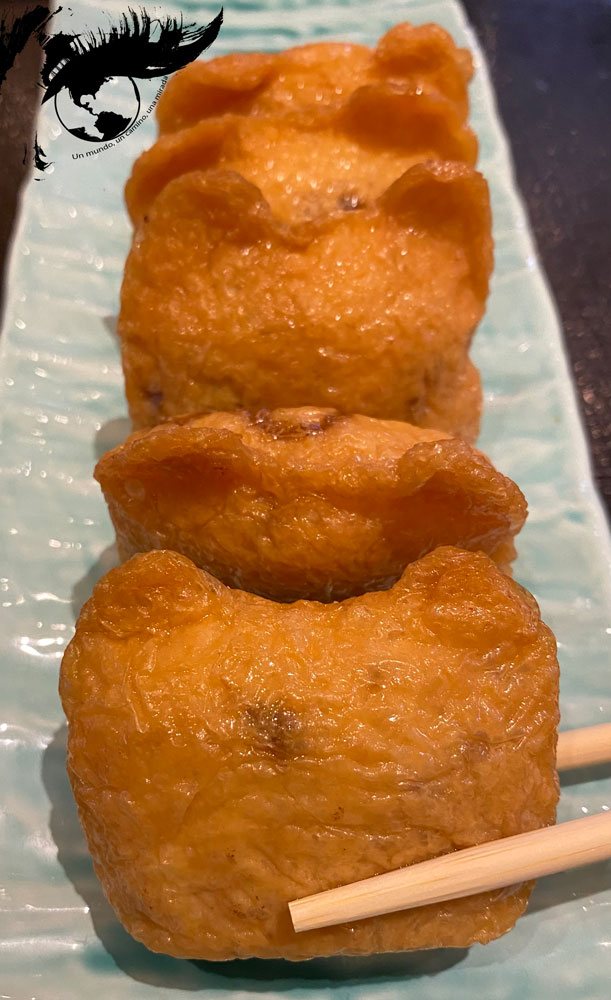 Aquí también podéis disfrutar de inari sushi, un tipo de sushi que se originó en el santuario Yutoku Inari en Fukuoka como ofrenda al kami del arroz para agradecer las buenas cosechas, pero que es muy popular en Kansai. Se trata de tofu relleno de arroz a veces con una forma que recuerda las orejas de un zorro (inari, el mensajero de los dioses).