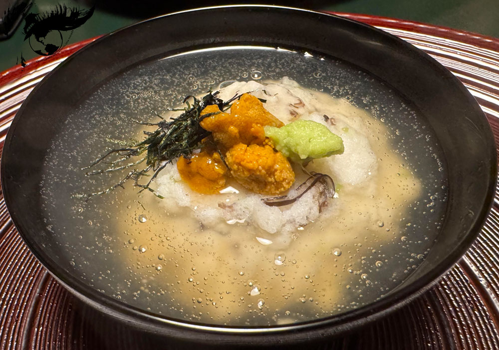 Para nuestro aniversario, en cambio, decidimos probar un menú kyo-kaiseki con platos de temporada, especialmente pescados y mariscos como las almejas o el cangrejo, que nos dejó totalmente enamorados. El kyo-kaiseki es una comida tradicional que se sirve en ocasiones especiales cuyo origen se encuentra en las ceremonias del té. El menú estaba formado por pequeños platos bellamente decorados cumpliendo con los cinco elementos fundamentales de la gastronomía japonesa (washoku).