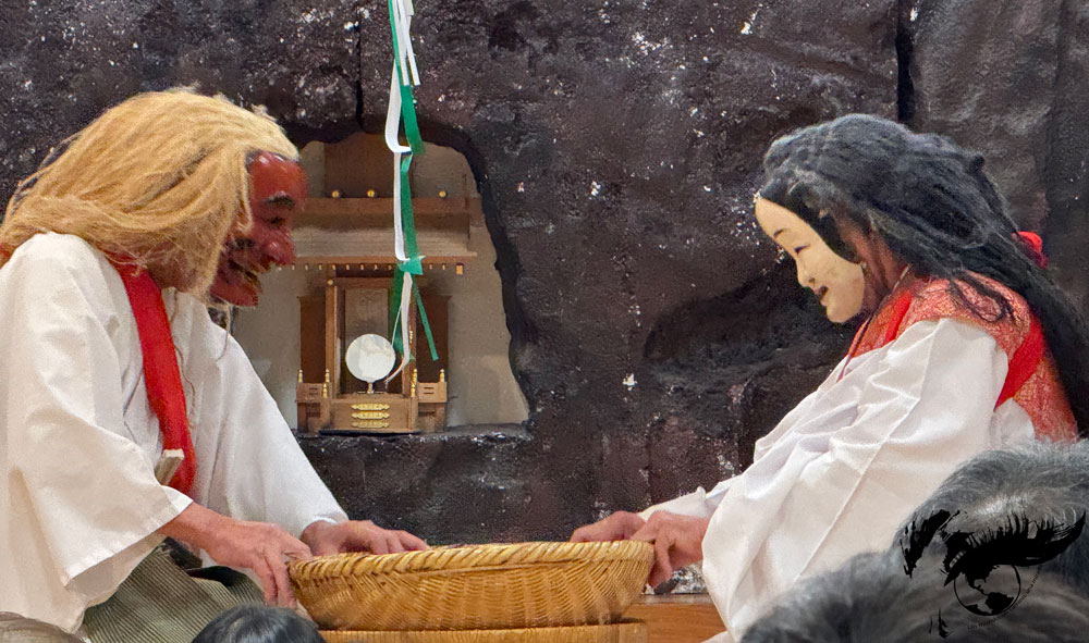 La cueva en la que se escondió Amaterasu se encuentra en Takachiho y pertenece al santuario Amanoiwato. Este santuario está formado por Amanoiwato Higashi Hongu que consagra a Amaterasu Omikami y en el lado opuesto del río Iwate, se encuentra Amanoiwato Nishi Hongu, asentado sobre el desfiladero que lleva a la cueva Amanoyasukawara (también conocida como Gyobogaiwaya). La cueva es considerada sagrada y tanto ésta como el santuario aparecen en las escrituras sintoístas Kojiki y Nihon Shoki.