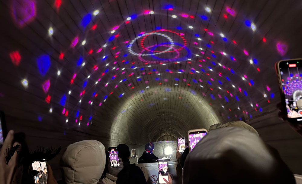 Otra actividad que se puede hacer en Takachiho es tomar el ferrocarril Takachiho Amaterasu. Se trata de un corto trayecto de unos 20 min que aprovecha la infraestructura de un antiguo ferrocarril que ya no funciona. En vagones sin techo se recorren aproximadamente 5 km desde la estación hasta el Puente de Hierro, el puente más alto de Japón con 105 m de altura, pasando por túneles iluminados y disfrutando del paisaje montañoso de Takachiho. El ferrocarril cierra el tercer jueves de cada mes.