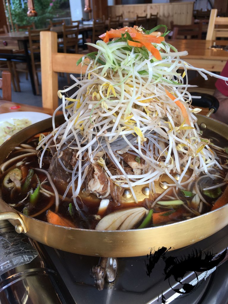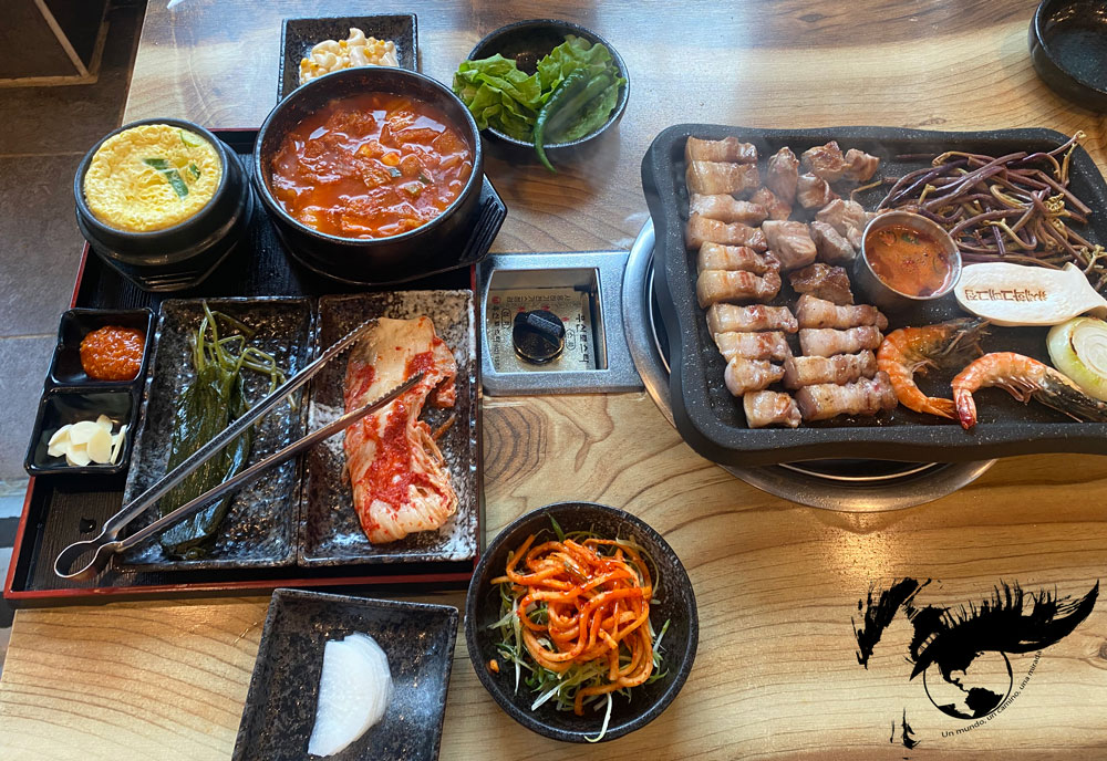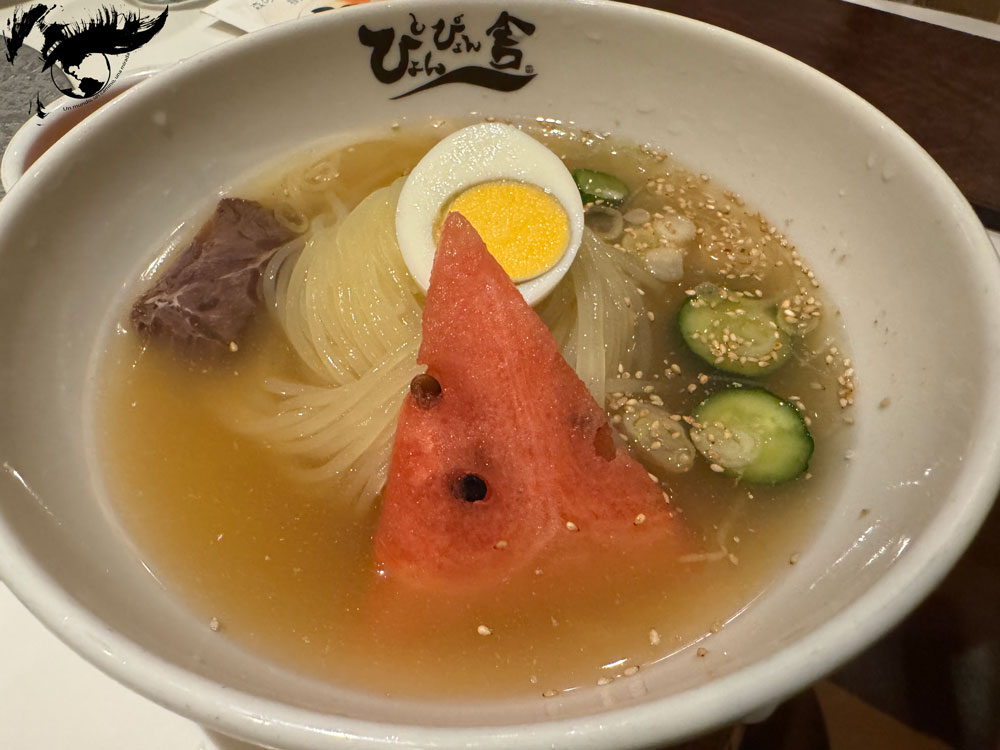 El Morioka reimen consiste en fideos hechos de harina de trigo y fécula de patata y una rica sopa que normalmente se sirve fría y se acompaña de carne, kimchi, fruta (pera, manzana o sandía), huevo hervido y pepino. Se cuenta que un emigrante norcoreano que llegó a Japón y se instaló en Morioka en 1954 trajo consigo esta receta de fideos fríos y se popularizó después de la Segunda Guerra Mundial. El reimen se puede degustar solo, aunque también hay la opción de combinarlo con yakiniku, como lo hicimos nosotros.