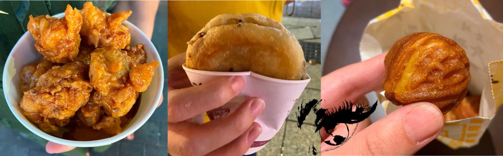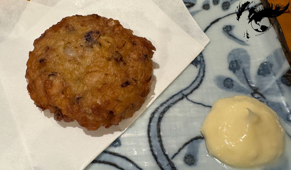 Otro plato emblemático de Hirosaki es el igamenchi o hamburguesa de calamar. Para probar el igamenchi, fuimos a una izakaya. Las izakayas son unas tabernas tradicionales japonesas que normalmente abren por la tarde-noche (a partir de las 18:00 h aproximadamente, dependiendo de la izakaya) y donde se sirven platillos junto a bebidas alcohólicas como el sake o el shochu. Además del igamenchi probamos también una vieras asadas y pinchos que estaban de rechupete.