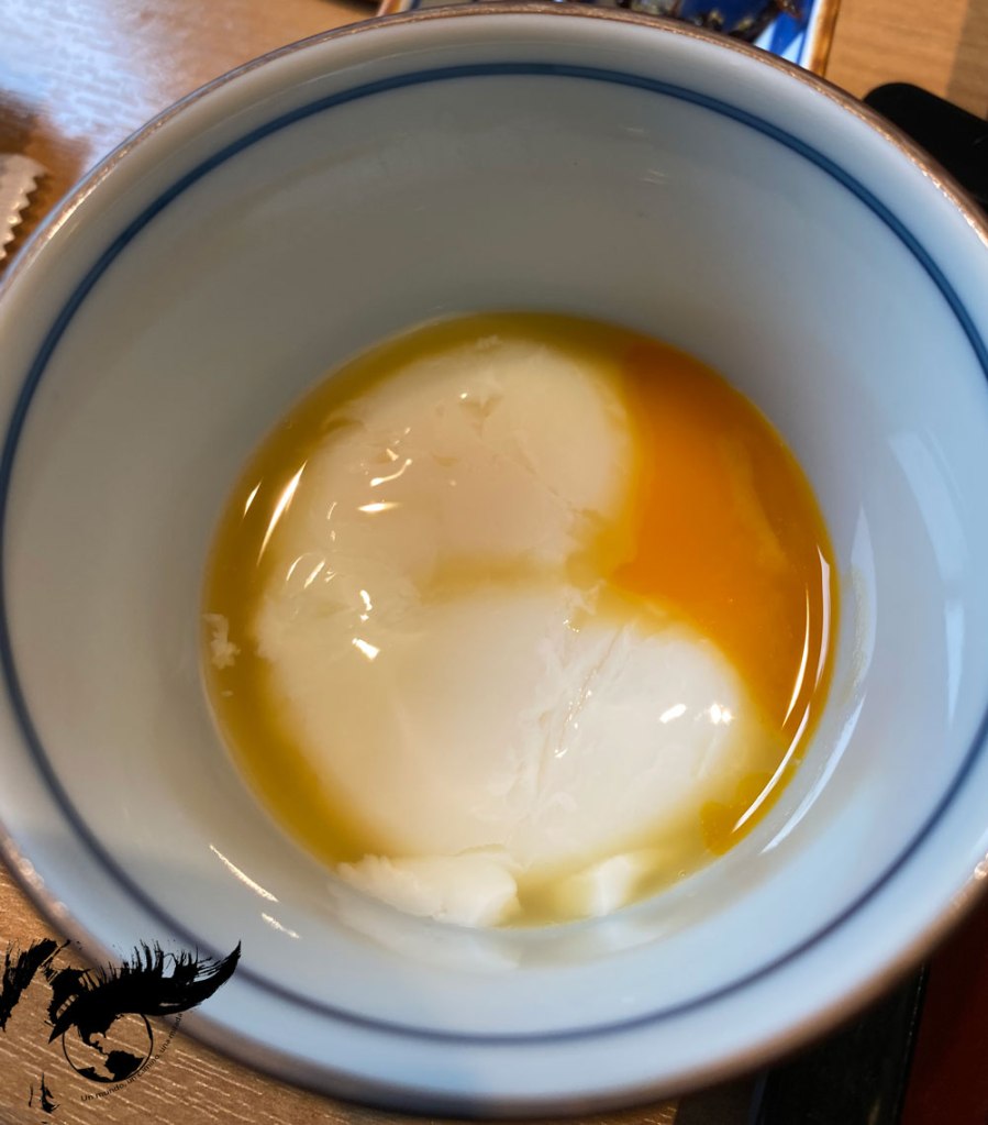 También es típico el onsen tamago o huevo cocinado lentamente en las aguas termales, resultando en una textura suave y cremosa con la yema líquida y la clara cuajada.