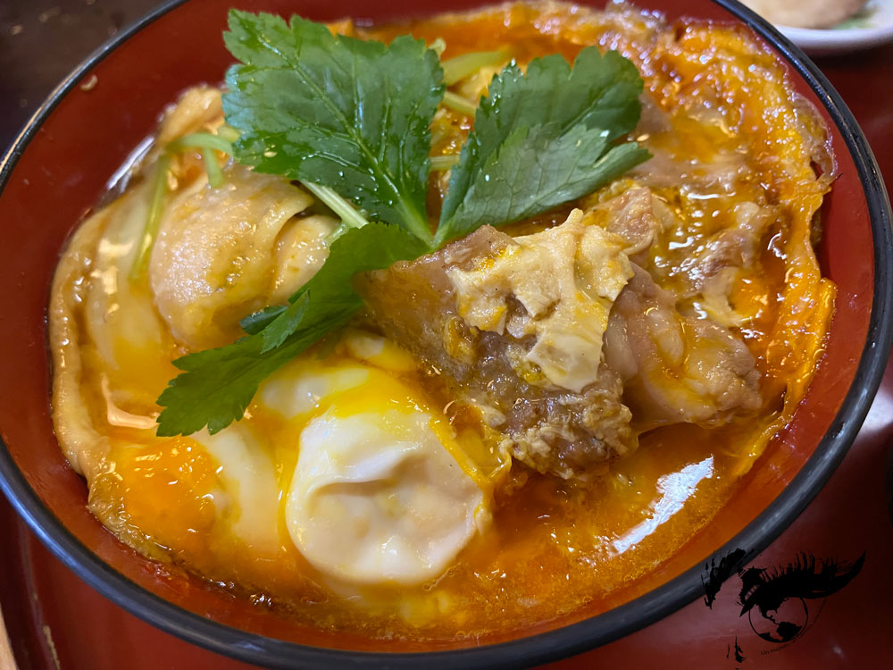 En Kakunodate también probamos un plato de pollo hinai jidori: el oyakodon, que literalmente se traduce como mamá e hijo, ya que este plato combina la carne de gallina (la mamá) con el huevo (el hijo). Se trata de un tazón de arroz con un guiso de pollo al que se le añade al final un huevo crudo que se acaba de hacer con el calor del plato.