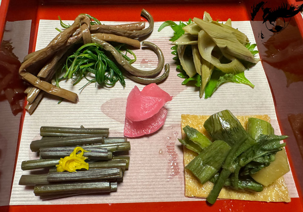 Estos menús incorporan ingredientes de temporada e incluyen especialidades locales, como por ejemplo el sushi de Akita. El sushi de Akita o hatahata sushi se elabora fermentando pescado hatahata con koji y arroz.