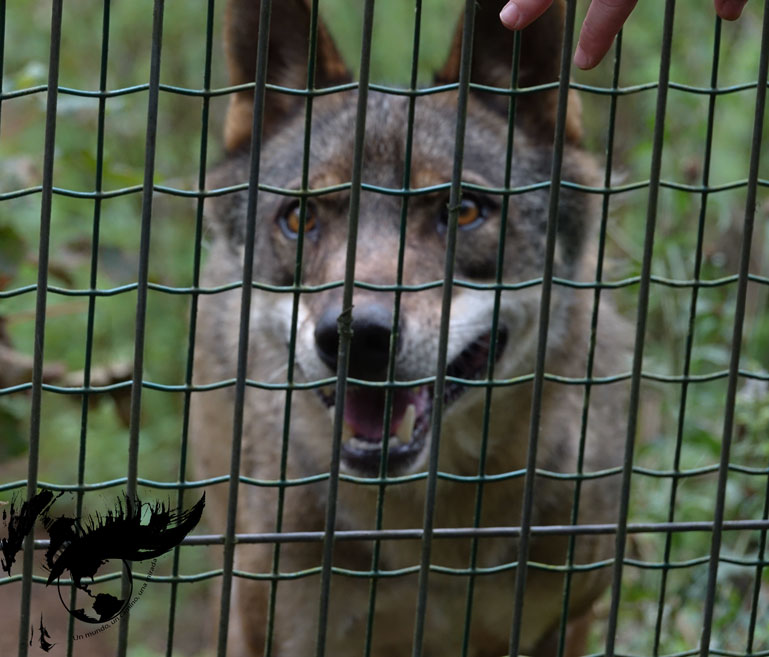 El primer contacto con los lobos ibéricos lo tuvimos en la Casa del Lobo en Belmonte de Miranda. Visitamos el museo e hicimos la ruta del lobo. Esta ruta recibe este nombre porque lleva hasta un cercado en que actualmente viven dos lobos macho. Este sendero se puede hacer por libre perfectamente, de hecho, está señalizado y hay hasta un merendero delante, sin embargo, antes de juzgar y lamentar su situación, vale la pena conocer su historia de la mano de la guía y así tener también un contexto general, no solo de estos dos lobos en particular, sino también de la situación de los lobos en Asturias. Belmon y Aullador son los nombres de los dos lobos que, desde su cercado, son testimonios de la complicada situación que viven los lobos en Asturias. No están allí por puro capricho, ni tampoco para ser exhibidos a los visitantes, sino que están allí por tener la mala suerte de encontrarse con los humanos. La manada de Belmon y de su hermano, Tino, que murió el año pasado, fue asesinada en una de las partidas de caza al lobo. Sin embargo, los hermanos consiguieron sobrevivir y ambos fueron rescatados con tan solo semanas de vida… El hecho de perder a su familia de la mano del hombre les ha condenado a vivir toda la vida encerrados, ya que sin una manada no pudieron volver a la naturaleza. Por otro lado, la historia de Aullador es aún más desoladora ya que fue capturado por un hombre que se había encaprichado con querer tener un lobo como mascota y que lo desechó como si nada cuando vio que no se comportaba como un perro. Estando ya acostumbrado al contacto con los humanos, fue condenado a vivir toda la vida privado de la libertad.