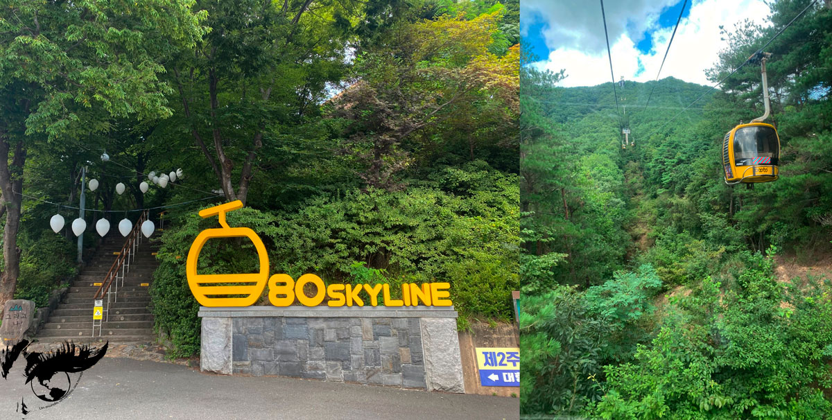 Tras visitar el templo, pusimos rumbo de vuelta a la parada de autobús, pero no para volver a la ciudad, sino para seguir una parada más hasta el teleféricoPalgongsan. Este teleférico sube a la montaña más alta de Daegu y ofrece unas vistas impresionantes. El recorrido es de 1,2 km y sube a una altura de 820 m.