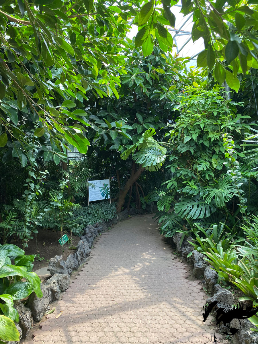 En cuanto al jardín botánico, éste está distribuido en varios jardines más pequeños, cada uno con una temática: plantas tropicales, cactus, bonsáis, palmeras, etc.