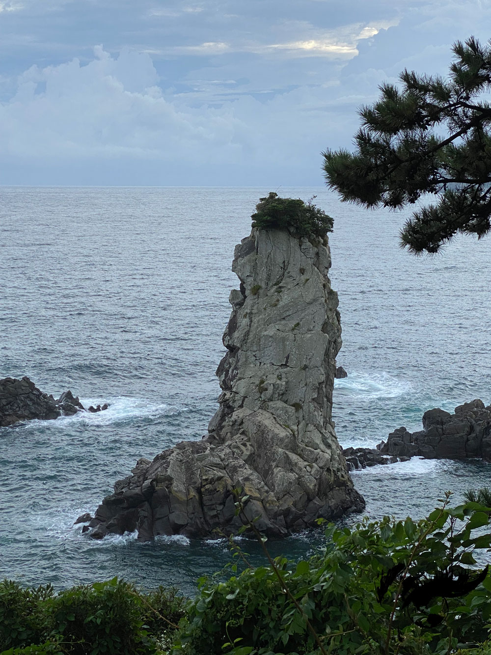Para finalizar nuestro primer día en Jeju, nos dirigimos al cabo Seopjikoji para ver la roca Seonnyeobawi, cuyo nombre significa “roca del hada”. Hay un camino preparado, muy cómodo que lleva hasta el faro y cerca de la roca, aunque por el camino hay diferentes miradores desde los cuales se pueden conseguir muy buenas fotos.