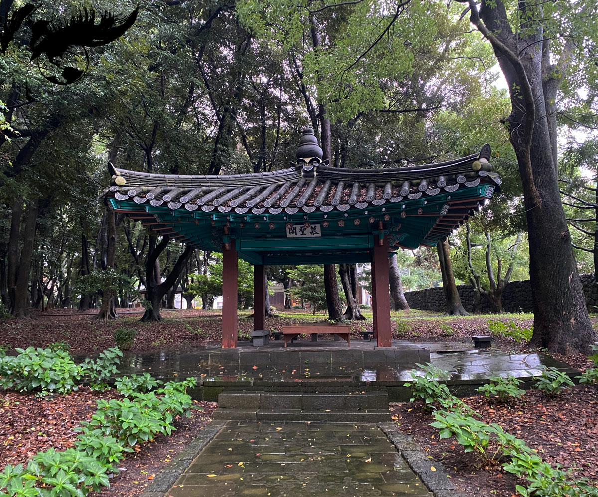 Nuestra siguiente parada del día fue Samseonghyeol. Está situado al lado del museo, al otro lado del río, y no teníamos ni idea de lo que se trataba, pero como tampoco teníamos nada mejor que hacer por culpa de la lluvia, decidimos entrar e investigar. El recinto parece un parque con árboles inmensos y algunas construcciones. Lo mejor es empezar el trayecto por el pequeño museo que se encuentra en el lado derecho, porque así os podéis hacer una idea de qué es lo que veréis a continuación. Y es de hecho lo que nosotros hicimos, aunque fue por casualidad.