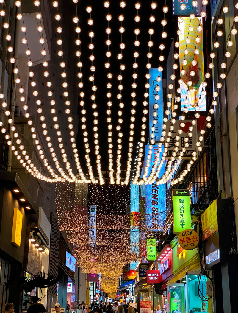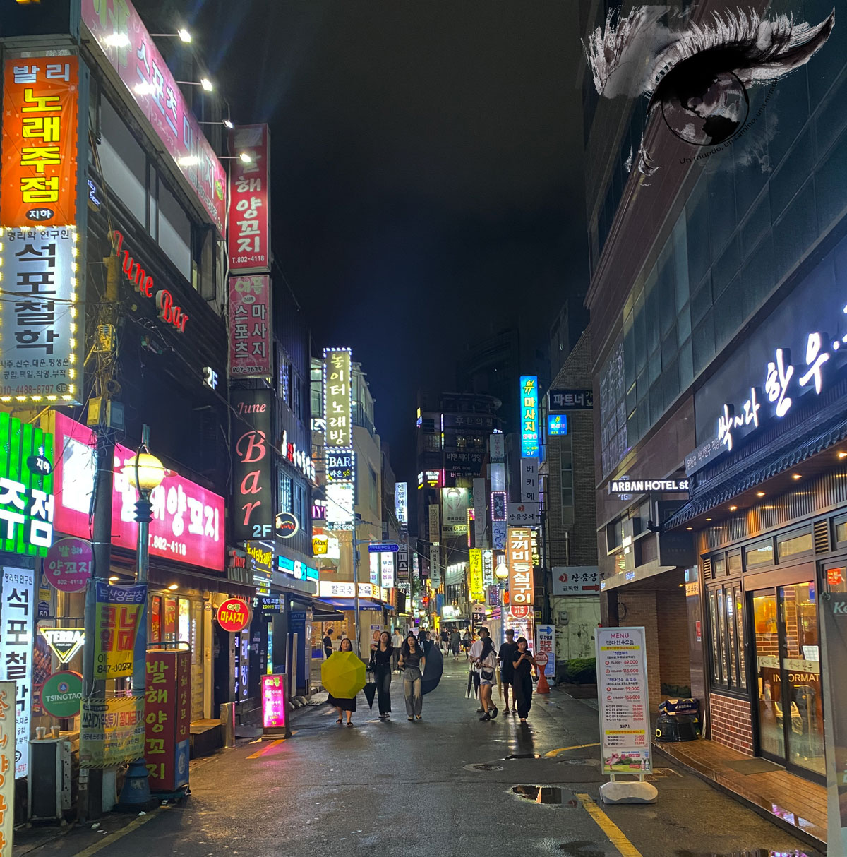 Contentos con nuestra primera gran experiencia en Busán, pusimos rumbo a la calle Seomyeon con la intención de cenar y conocer la vida nocturna de la ciudad, pero nuestro gozo acabó en un pozo cuando una tormenta decidió que ya era hora de volver al hotel…