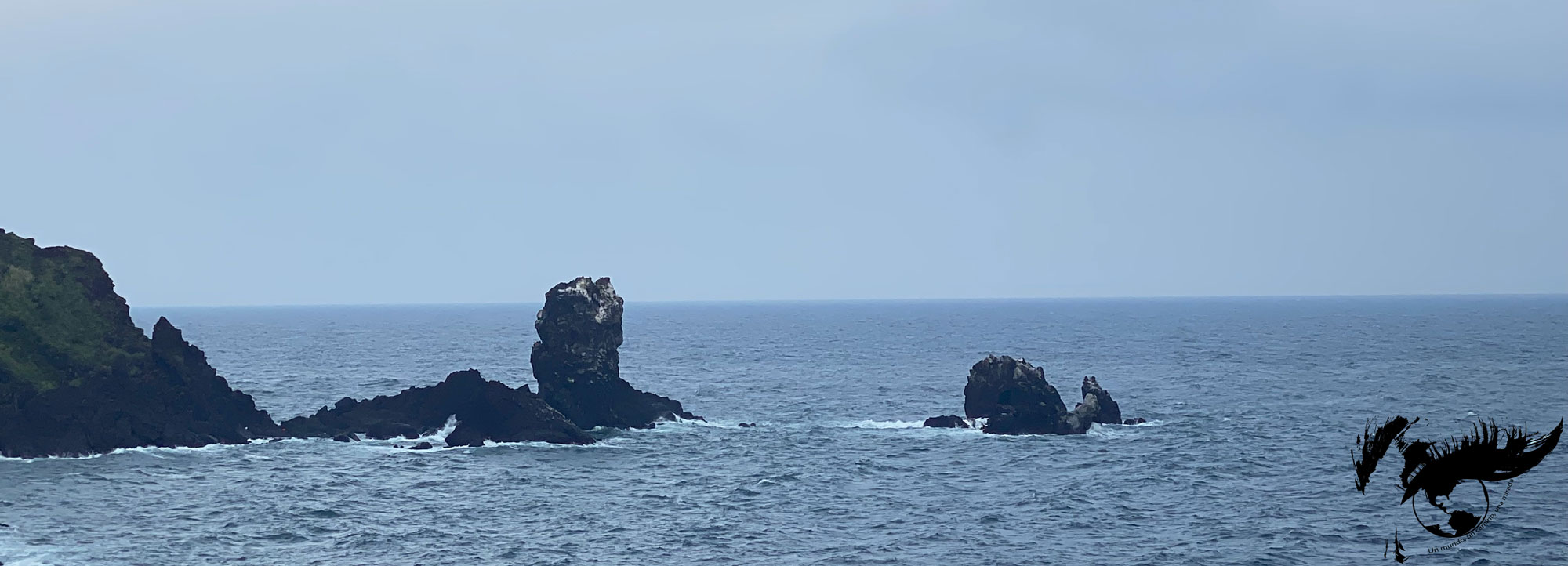 Tras un día totalmente soleado, nuestra suerte cambió cuando empezamos a recibir alertas de seguridad pública. Al estar conectados a una red coreana (por tener una SIM o eSIM) se reciben también estas posibles alertas, y, aunque están en coreano, se pueden traducir fácilmente con Google Lens. Y es así como descubrimos que una gran tormenta tocaría la isla durante la noche y que nos acompañó prácticamente durante los dos días que nos quedaban, trastocando así todo el itinerario que teníamos pensado… Esa misma tarde el cielo ya se empezó a ver encapotado…