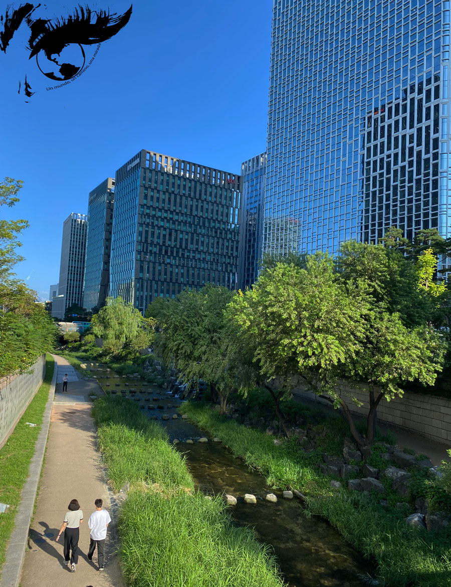 De aquí pusimos rumbo a nuestro último destino del día, el arroyo Cheonggyencheon, que cruza las áreas céntricas de Jongno-gu y Jung-gu. Es impresionante como en medio de un mar de rascacielos haya un recorrido de unos 12 km, bordeando el arroyo que te traslada a plena naturaleza. ¡Un paseo totalmente recomendable!