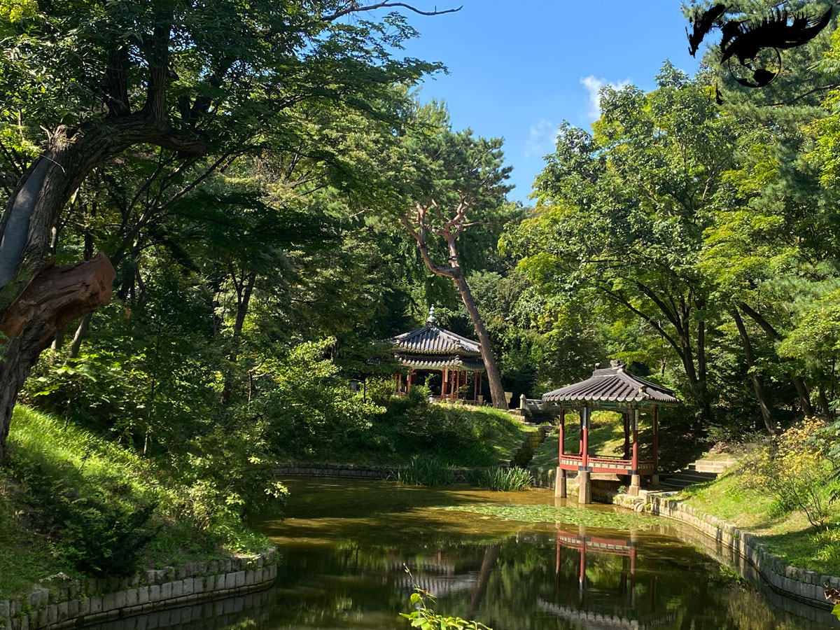 Tras perdernos por los diferentes edificios que componen el recinto palaciego, nos dirigimos al jardín secreto de Huwon. Para acceder a este jardín, hay que comprar una nueva entrada en la que se asigna un turno, sin embargo, no hay tours en inglés a partir de la una de la tarde, por lo que nada más entrar, pudimos visitar el jardín a nuestro aire. Este jardín es considerado uno de los más importantes de toda Corea del Sur, y fue lugar de ocio de reyes y reinas.