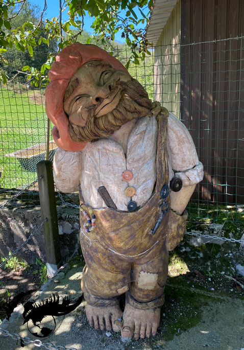 Y ya de vuelta hacía Avilés, donde pasamos la última noche antes de volver, no pudimos resistirnos a hacer una última ruta de senderismo: el Camín Encantau. Este sendero circular se encuentra en la localidad de Venta de Probes, de unos 8,6 km de longitud. La ruta tiene cierto desnivel, con una primera subida empinada. Pero vale la pena por los paisajes que la rodean y por ser también un recorrido por la mitología asturiana. Y es de allí que recibe el nombre de camín encantau, de los personajes tallados en madera que aparecen a medida que avanzamos en la ruta. El primero que nos da la bienvenida es Sumiciu, el duende que hace desaparecer los objetos.