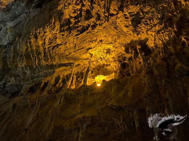 Tras esta aventura, cogimos el coche y nos dirigimos a la Cuevona de Cuevas del Agua, una corta cueva por la que discurre una carretera, que es el único acceso a la aldea de Cuevas del Agua. Dicho de otro modo, es una cueva que se puede cruzar perfectamente en coche. Sin embargo, yo os recomendaría que aparquéis el coche y disfrutéis de la cueva a pie, que es como lo hicimos nosotros. Son unos 300 m de recorrido perfectamente iluminados, destacando las fascinantes formaciones calcáreas de esta cueva.