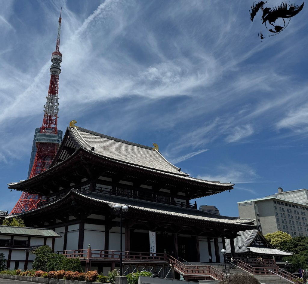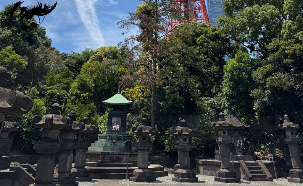 Zojoji es un templo budista fundado en 1393 y trasladado a la ubicación actual en 1598 por Tokugawa Ieyasu, convirtiéndose en el templo familiar. En aquella época contaba con 48 templos y 120 edificios dedicados a las enseñanzas budistas y a recibir monjes y novicios, y era el centro administrativo de los templos Jodo-Shu (rama del budismo de la Tierra Pura) de todo Japón. Durante los bombardeos de la Segunda Guerra Mundial quedó totalmente destruido, con la excepción de la puerta principal, Sangedatsumon, original del año 1622 y declarada Patrimonio Cultural de Japón.