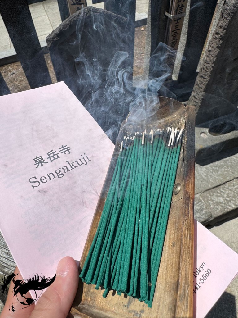 Casi dos años después de la muerte de Asano, 47 ronin (samuráis sin señor) de Ako, bajo el mando de Oishi Kuranosuke, se reunieron para vengar la muerte de su señor. El 14 de diciembre de 1702 atacaron y mataron a Kira en su residencia y, con su cabeza, se presentaron ante la tumba de Asano en Sengakuji. Posteriormente se entregaron al sogunato y todos, excepto uno, fueron condenados a cometer seppuku el 4 de febrero de 1703 y enterrados junto a su señor en Sengakuji. Uno de los ronin, el encargado de comunicar el asesinato de Kira, fue perdonado y vivió hasta los 87 años. Aunque en Sengakuji se encuentra una tumba suya (tumba memorial), éste fue enterrado en Sokeiji, otro templo budista de Tokio. Se puede acceder a la tumba de Asano y de los ronin y quemar incienso, como muestra de respeto. Para saber más sobre Ako Gishi, hay un pequeño museo y también una sala con esculturas de los ronin cerca de las tumbas a los que se accede con la misma entrada.